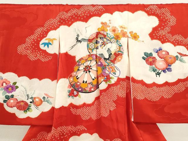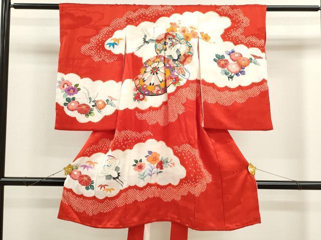 Heiwaya Kimono for Shrine Visits, Girls, Celebration Kimono, Baby Kimono, First Kimono, Noshime, Shibori, Genji Wheel, Flying Crane, Floral Design, Excellent Quality, CAAT6213ze