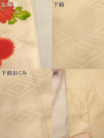 産着【正絹】の状態は接写画像のように左袖前・下前・下前おくみに薄い汚れ、衿にシミがございますが