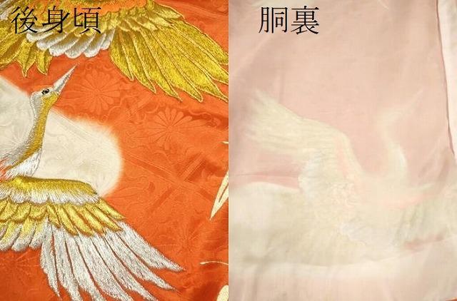 産着【正絹・一つ紋】の状態は接写画像のように後身頃・胴裏所々に薄い汚れがございます。