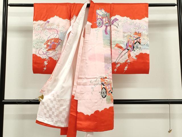 産着【表地:正絹・胴裏:化繊、襦袢:化繊】の状態は特に目立ったシミ汚れなどもなく大変良い状態です。