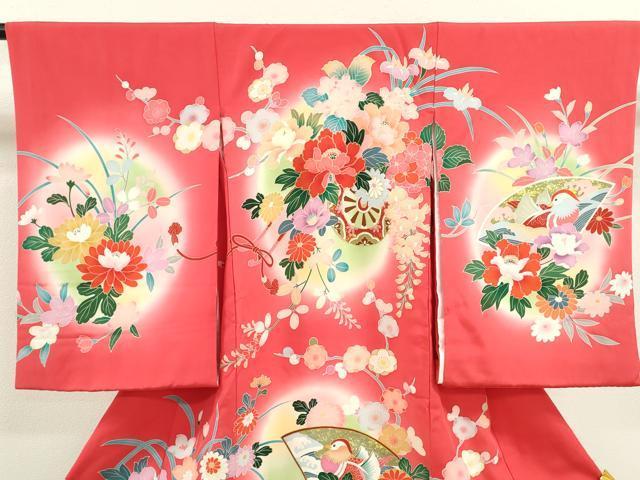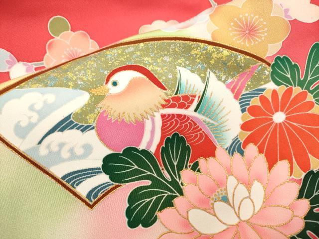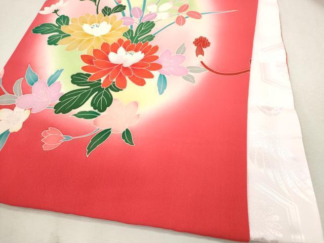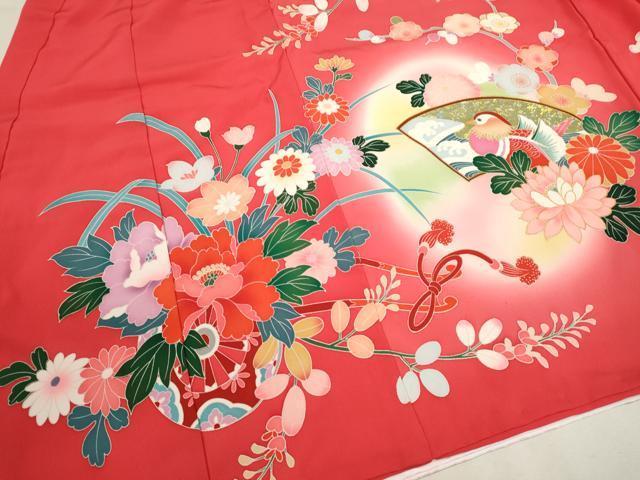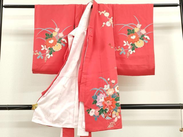 産着【表地:正絹・胴裏:化繊、襦袢:化繊】の状態は接写画像のように左袖後ろに薄い汚れがございますが