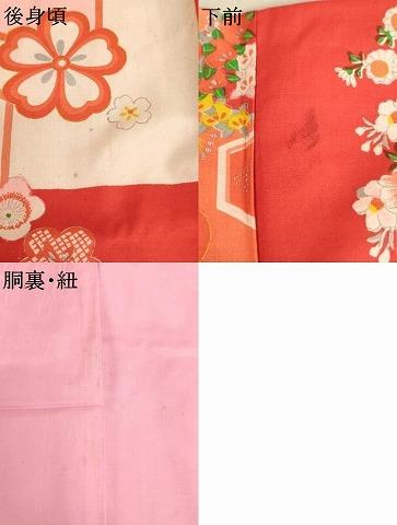 産着【正絹・一つ紋】の状態は接写画像のように後身頃・下前に汚れ、胴裏・紐に汚れがございますが