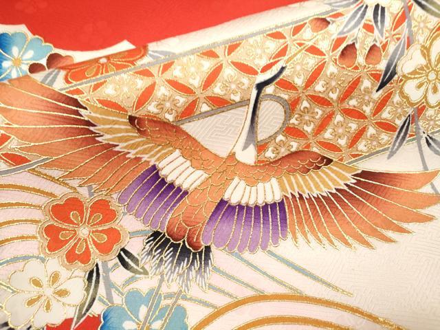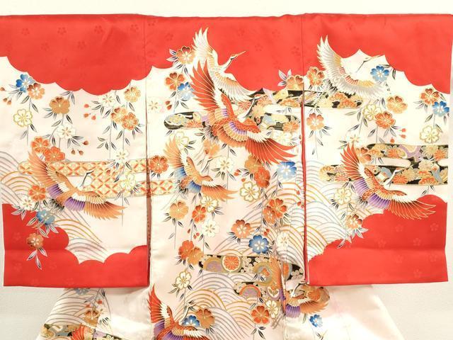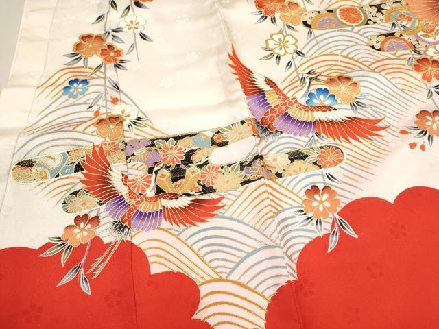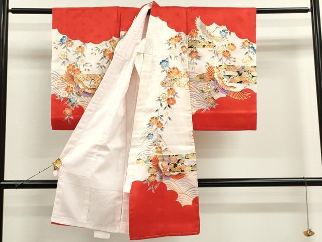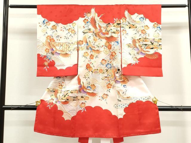 Heiwaya Kimono for Shrine Visits, Girls, Celebration Kimono, Baby Kimono, First Kimono, Noshime Kimono, E-Kasumi Auspicious Flying Crane and Flower Design, Gradient Dye, Gold Accents, Excellent Quality, CAAT6128ze