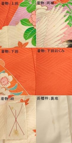 産着【正絹】の状態は接写画像のように上前・下前・両袖・下前おくみに薄い汚れ、紐部分に汚れがございますが
