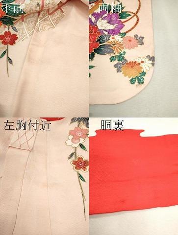 産着【表地:正絹・胴裏:化繊】の状態は接写画像のように下前・両袖・左胸付近・胴裏に薄い汚れがございますが