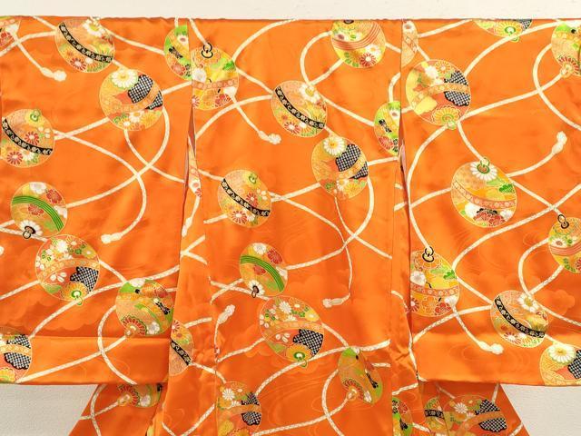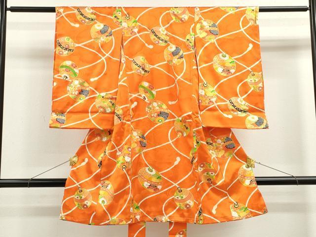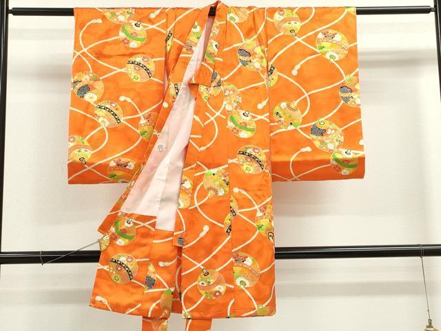 産着【表地:正絹・胴裏:化繊】の状態は接写画像のように胴裏・上前に薄い汚れがございますが