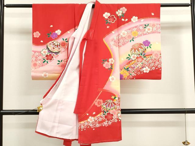 産着【表地:正絹・胴裏:化繊、襦袢:化繊】の状態は特に目立ったシミ汚れなどもなく大変良い状態です。