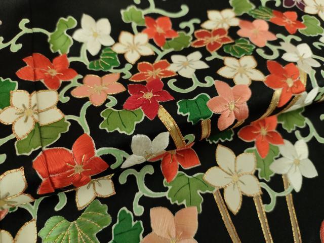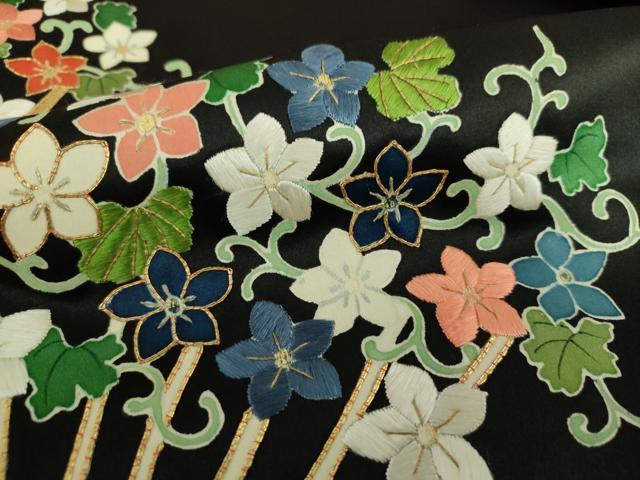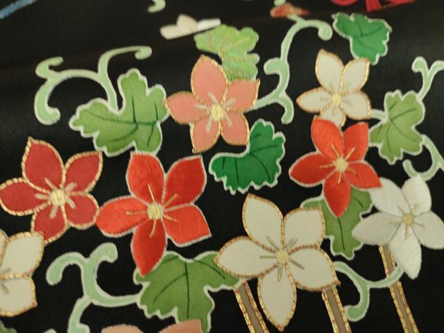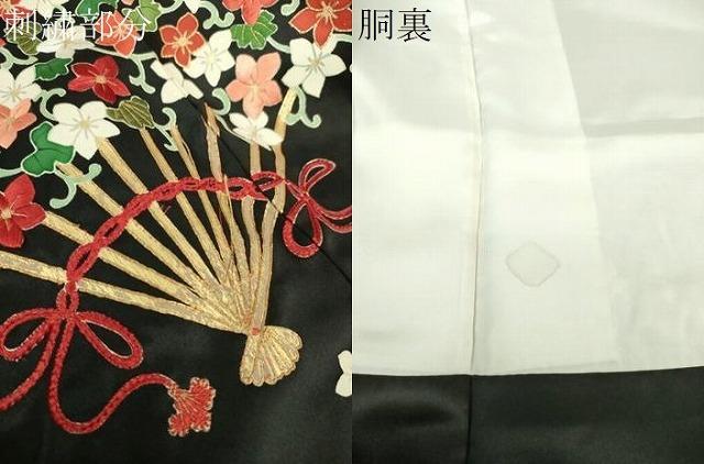 状態は接写画像のように刺繍部分に糸解け、胴裏に薄いシミがございますが