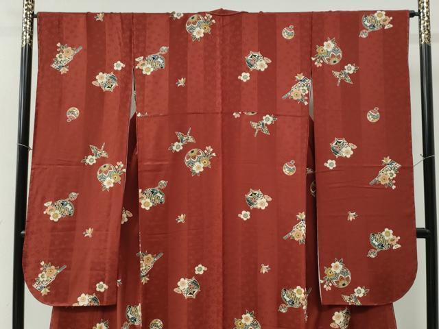 Heiwaya Kimono: Gorgeous Furisode with Rabbit and Hairpin, Ball-Folded Crane and Plum Blossom Design, Gold Accents, Kyoto Kimono Yuzen, Pure Silk, Excellent Condition, Unused, CABB4193yc