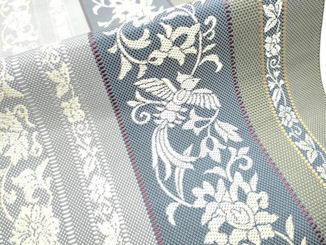 Heiwaya Kimono: Hakata Orijin Kuroki Orimono, Authentic Chikuzen Hakata Obi, 8-inch Nagoya Obi, Single-Layer Obi, Sarasa Floral Arabesque Pattern, Pure Silk, Excellent Quality, CABB0567hy