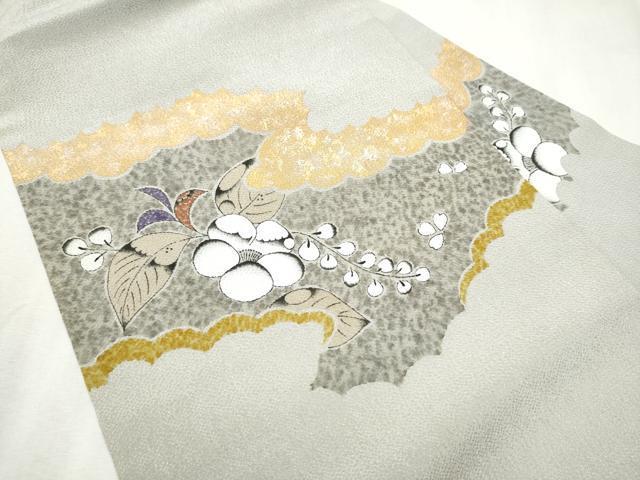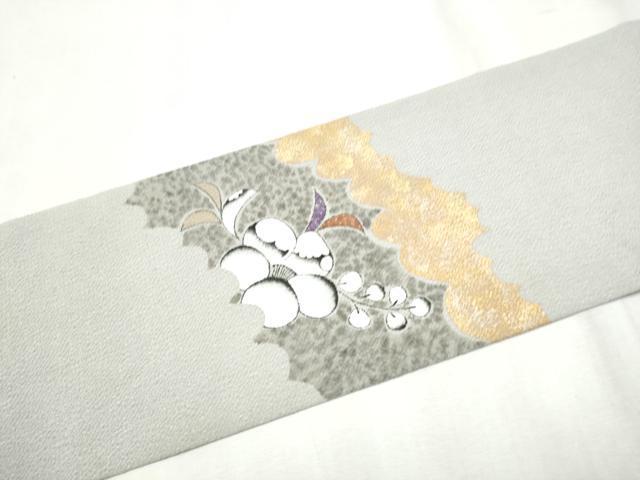 Heiwaya Kimono: Haruyoshi Uchiyama, 9-inch Nagoya Obi, Tsujigahana Pattern, Gold-Embossed Crepe Silk, Excellent Quality, CABB9508hy
