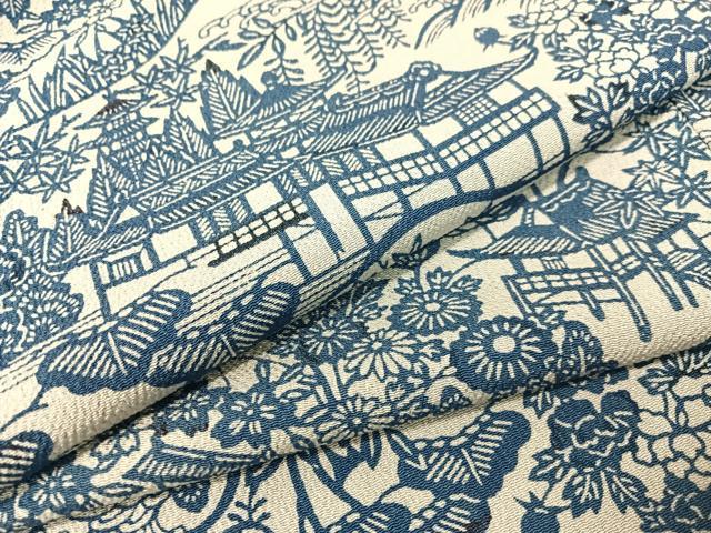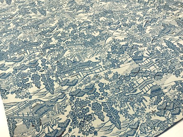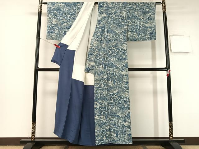 Heiwaya Kimono: High-quality Komon (small pattern) in indigo, stencil-dyed, landscape and floral design, oni-shibo crepe, pure silk, exquisite item, CABB5046vp