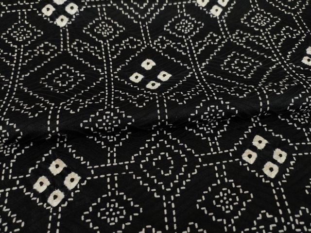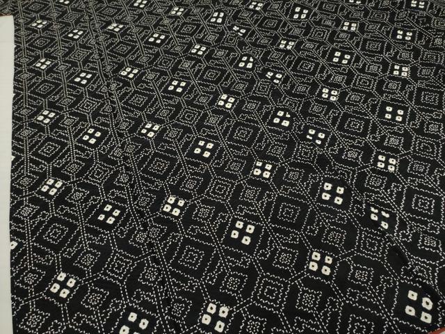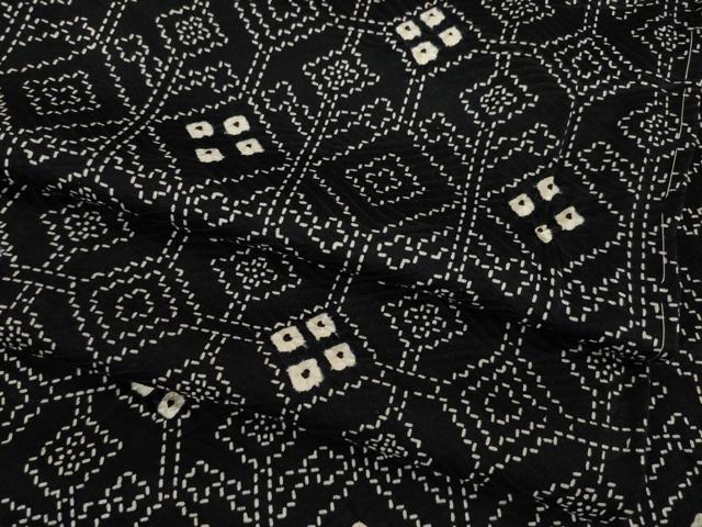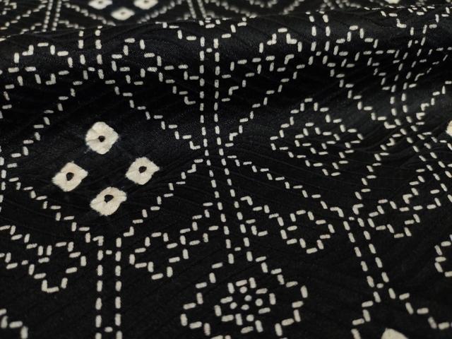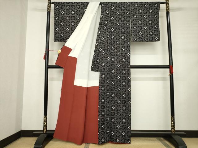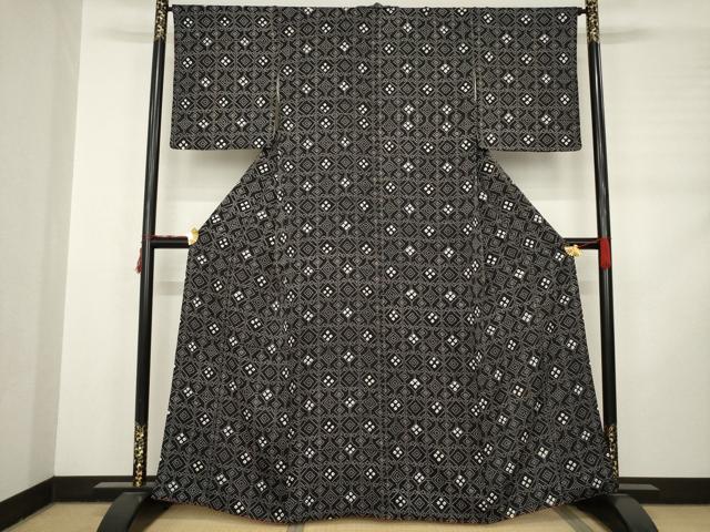 Heiwaya Kimono: High-quality Komon (small pattern) with a shibori (dyed) pattern and a flower diamond motif on a black background. This exquisite piece is made of pure silk and is a masterpiece. Product code: AABC9990ck