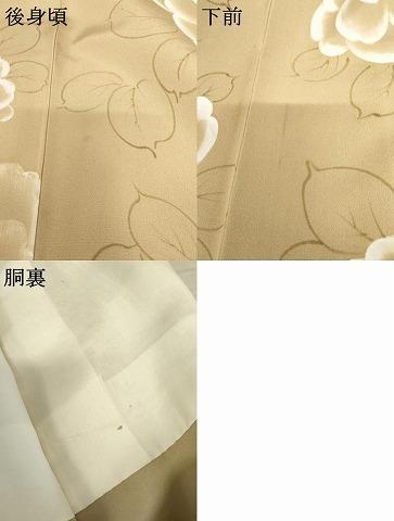 状態は接写画像のように後身頃に薄いシミ、下前にシミ、胴裏に薄い汚れがございますが