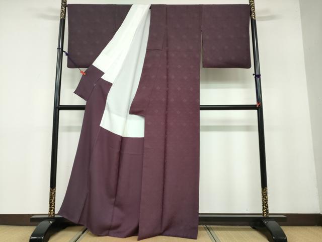 Heiwaya Kimono: High-quality plain kimono, koji-dyed, with a flower-shaped diamond pattern, purple robin color, with hem, pure silk, excellent quality, DAAY5881ud