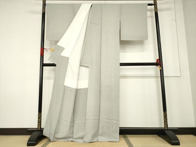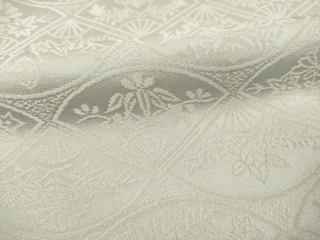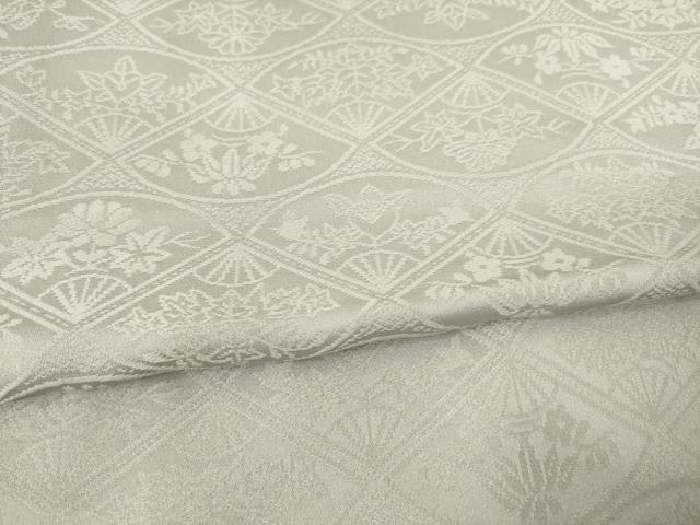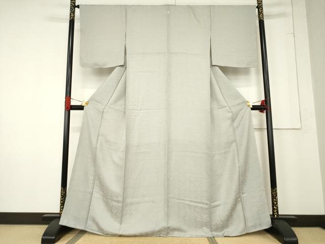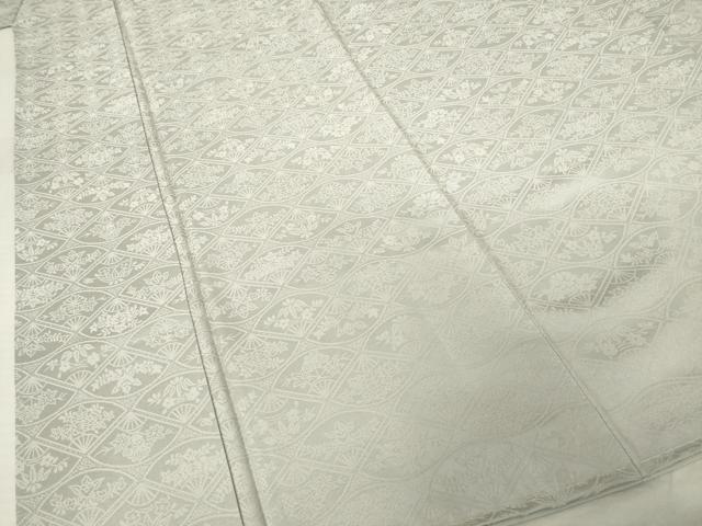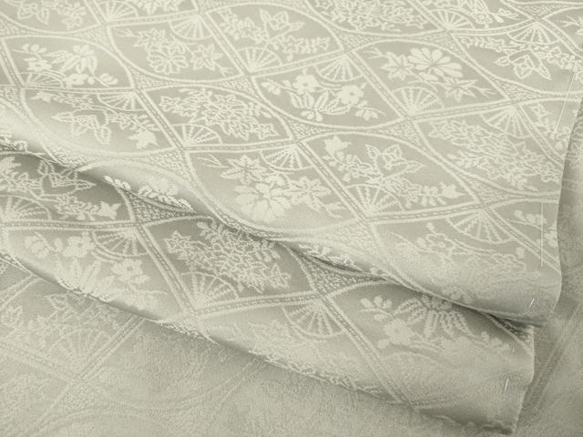 Heiwaya Kimono: High-quality plain kimono with a fan-shaped floral pattern, silver-gray, pure silk, excellent condition, unused, AABF0886ck