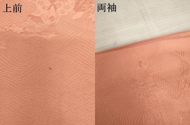 状態は接写画像のように上前に点汚れ、両袖に薄い汚れがございますが