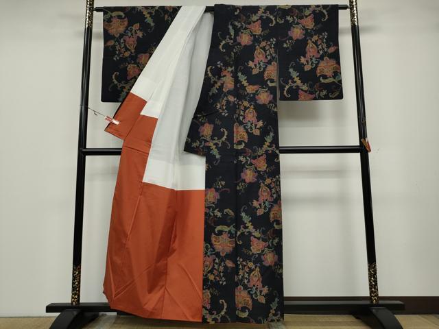 Heiwaya Kimono: High-quality tsumugi silk with floral print, pure silk, exquisite item, CABA1703ut