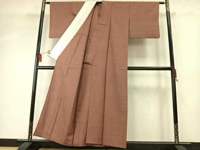 Heiwaya Kimono: High-quality Tsumugi (single layer) plain kimono in Enshu brown, pure silk, excellent quality, AABE5738fy