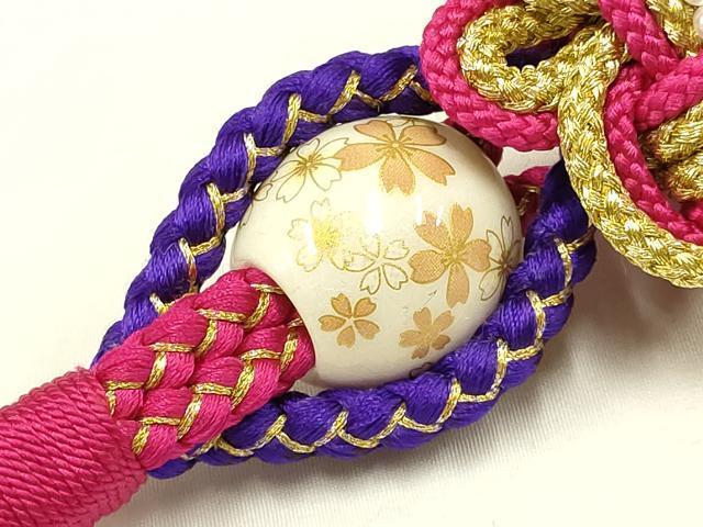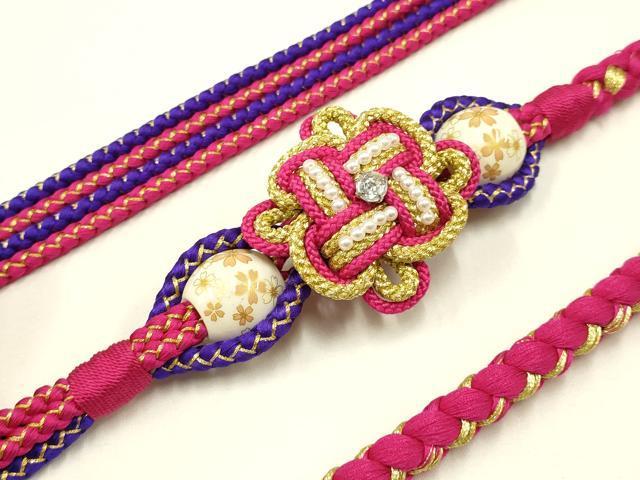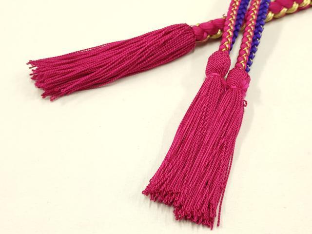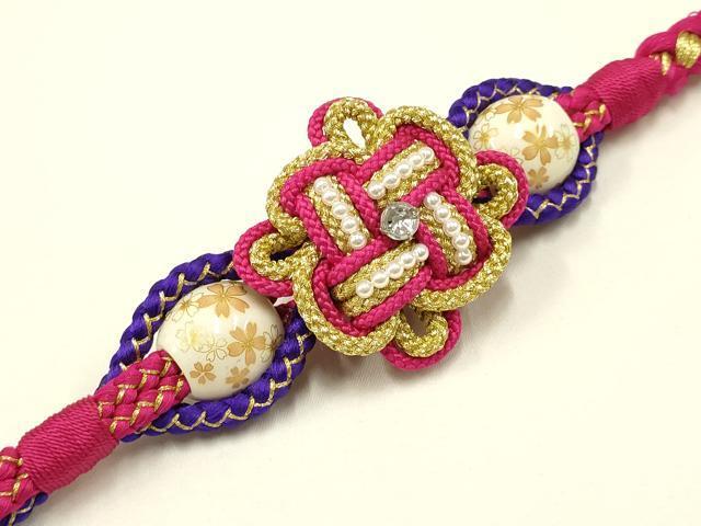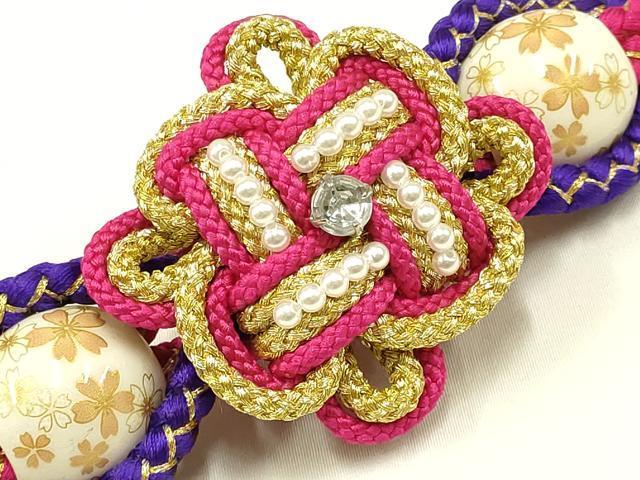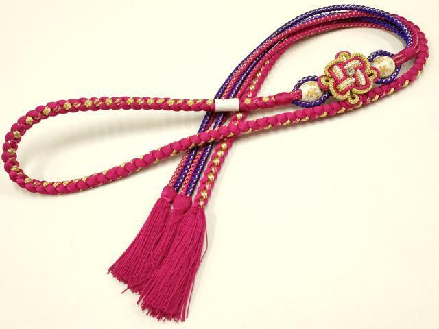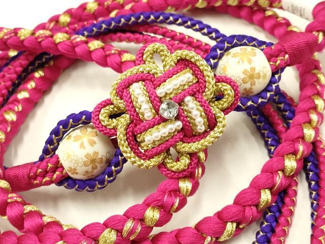 Heiwaya Kimono: Japanese Accessories, Furisode Obi-jime (Sash Band), Decorated with Pearls, Rhinestones, Beads, Gold Thread, and Twisted Tassels. Excellent Condition, Unused. AABC2611ay