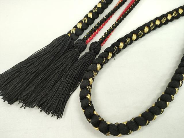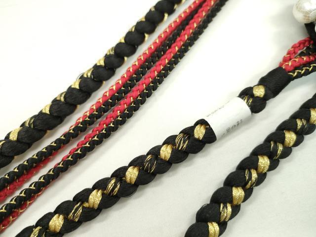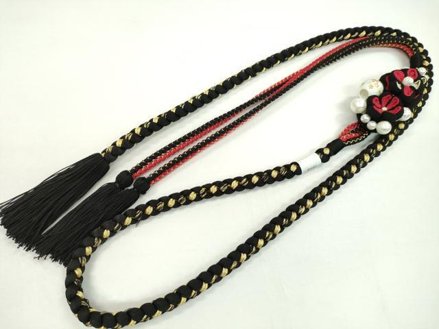 Heiwaya Kimono: Japanese Accessories, Furisode Obijime (Sash Band), Decorative Beads, Tsumami Zaiku (Pearl-Shaped Tassel), Black Gold Thread, Twisted Tassel, Excellent Condition, Unused, CAAX8326ju