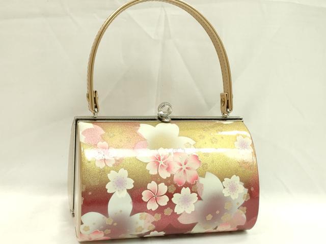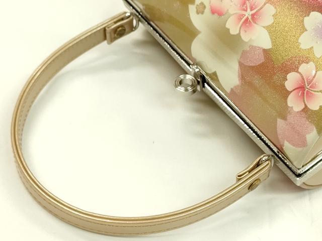 Heiwaya Kimono: Japanese Accessories, Handbag, Dancing Cherry Blossom Design, Gold and Silver Accents, Furisode, Excellent Condition, Unused, CAAQ8074ju