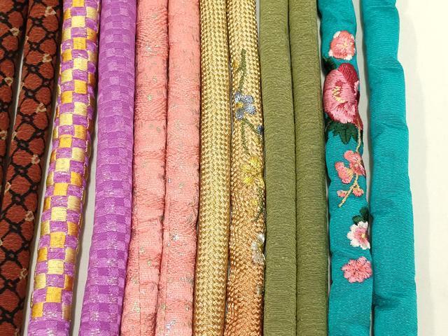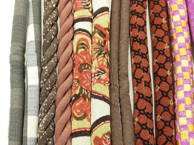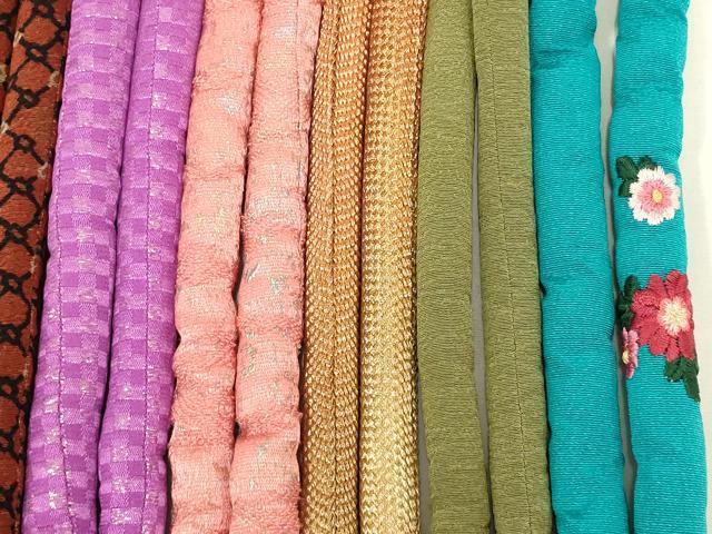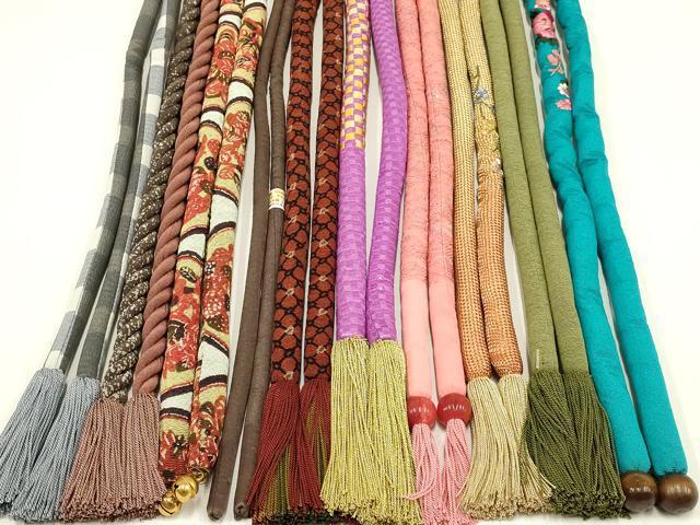 Heiwaya Kimono: Japanese Accessories. High-quality 10-piece obijime set. Round obi strings, embroidery, gradation, gold thread, gold leaf, decorative beads, wooden beads. Excellent quality. Unused items available. AABC4372ay