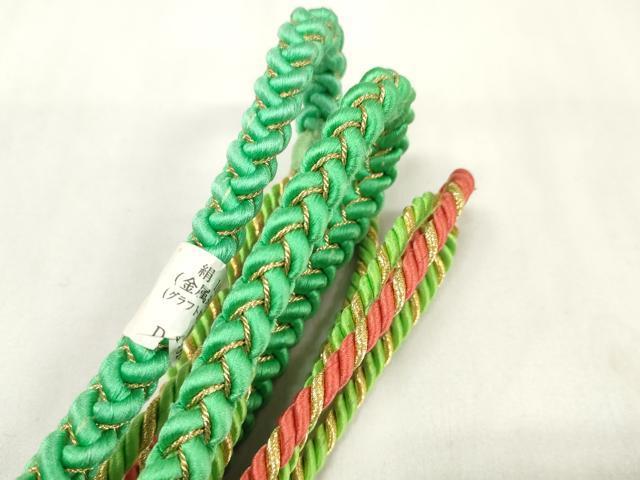 Heiwaya Kimono: Japanese Accessories: Obijime and Obiage Set for Furisode Kimono, Open-Cut Shibori Pattern, Seigaiha Pattern, Gold Thread, Excellent Quality, Unused, DAAW8410zzz