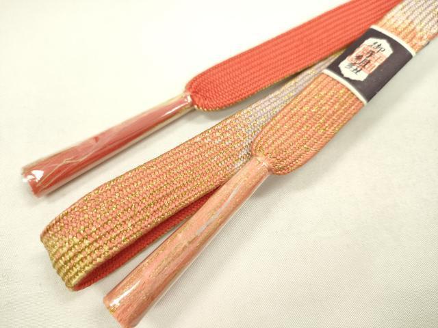 Heiwaya Kimono: Japanese Accessories, Obijime and Obiage Set, Kasumi Horizontal Stripe Pattern, Gradient Dye, Korean Pattern, Gold and Silver Thread, Excellent Condition, Unused, CAAZ6082ju
