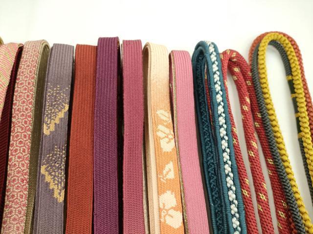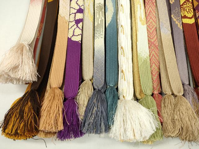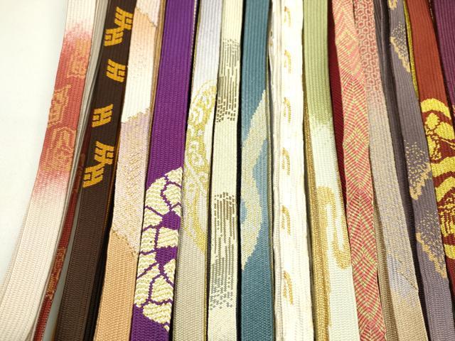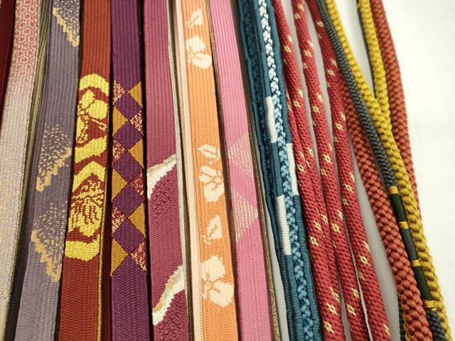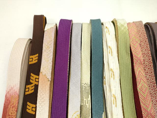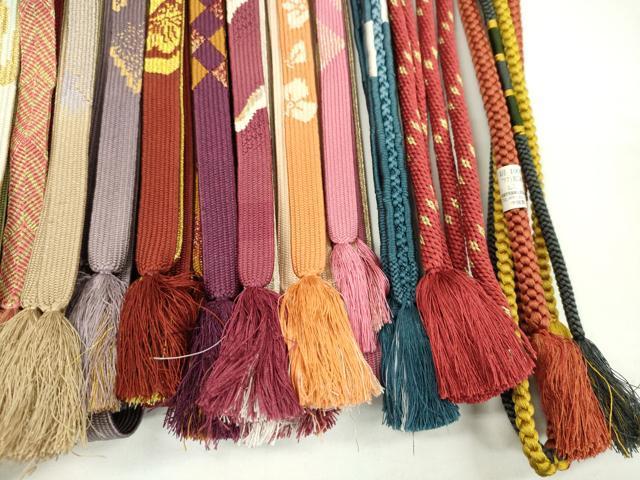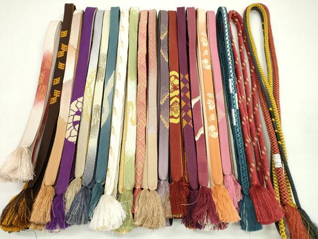 Heiwaya Kimono: Japanese Accessories, Set of 20 Obijime (Sash Bands), Korai-gumi (Koriya-gumi), Owari-kai (Shell-like Mouth Braid), Sasanami-gumi (Sasanami-gumi), Gold Thread, Long Lengths Available, Some Unused, Excellent Condition, CAAZ6288ju