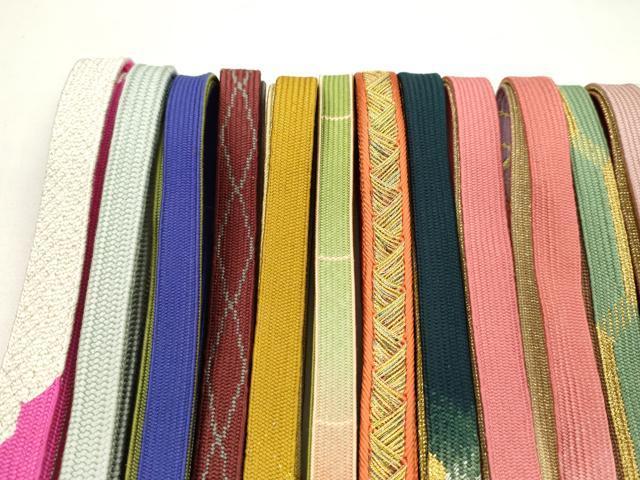 Heiwaya Kimono: Japanese Accessories, Set of 20 Obijime (Sash Bands), Korai-gumi (Koryo-gumi) and Sasanami-gumi (Sasanami-gumi) Styles, Formal Wear, Gold Thread, Long Lengths Available, Some Unused, Excellent Condition, CAAZ6245ju