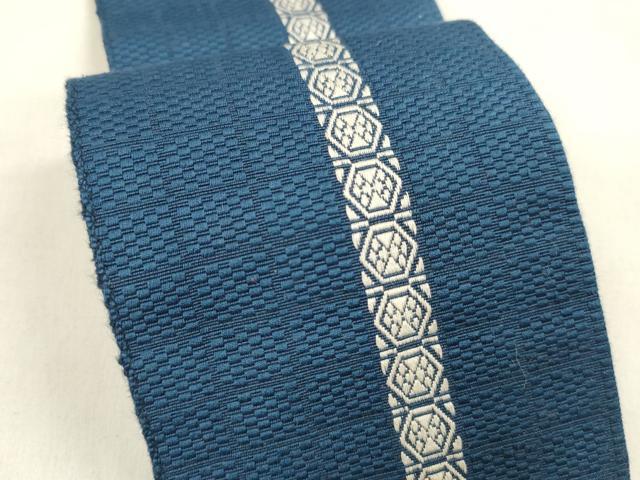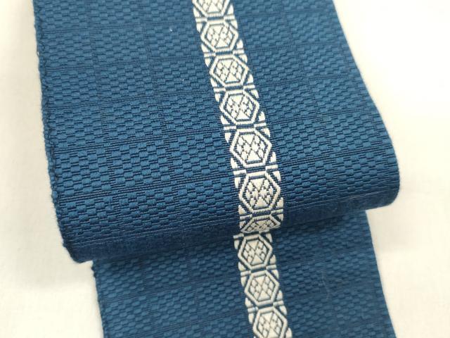 Heiwaya Kimono: Men's Authentic Chikuzen Hakata-ori Double-Sided Square Obi (Sash), Mado, Pure Silk, Excellent Quality, DABA0399cm