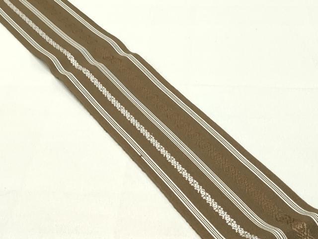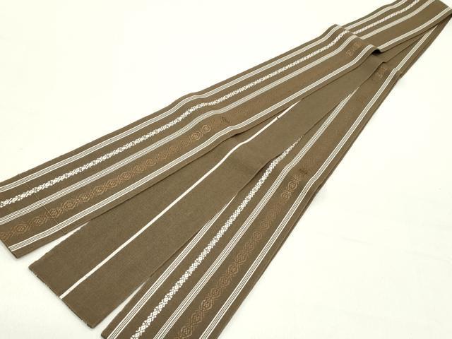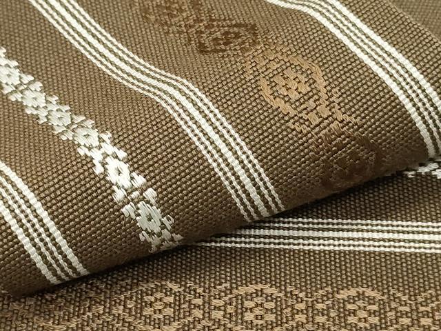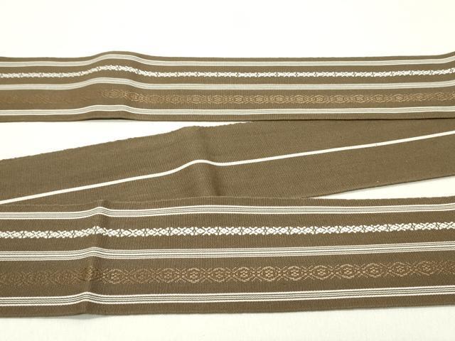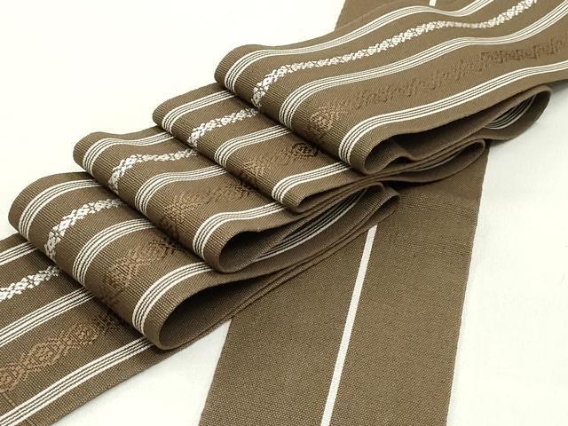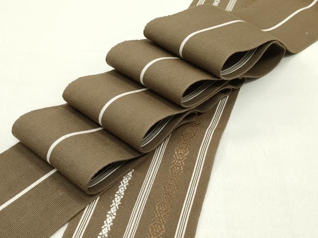 Heiwaya Kimono: Men's Authentic Chikuzen Hakata-ori Double-Sided Square Obi (Sash), Kenjo (Precious Stone), Mado (Dark Brown), Pure Silk, Excellent Condition, DAAZ3075ob