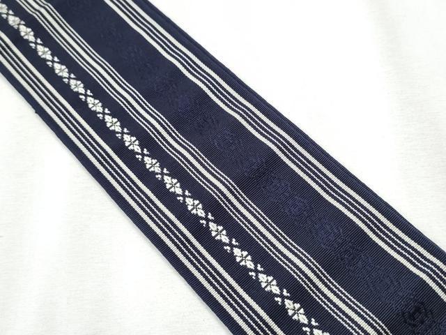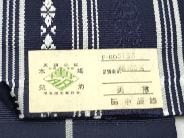 Heiwaya Kimono: Men's Authentic Chikuzen Hakata-ori Obi (Sash), Made by Tanaka Tatsuo, Authentic Silk, with Certificate of Authenticity, CABA1013hy
