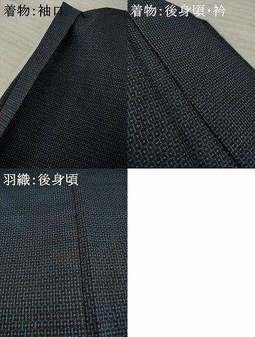 着物の状態は接写画像のように袖口・後身頃・衿に薄い汚れがございますが
