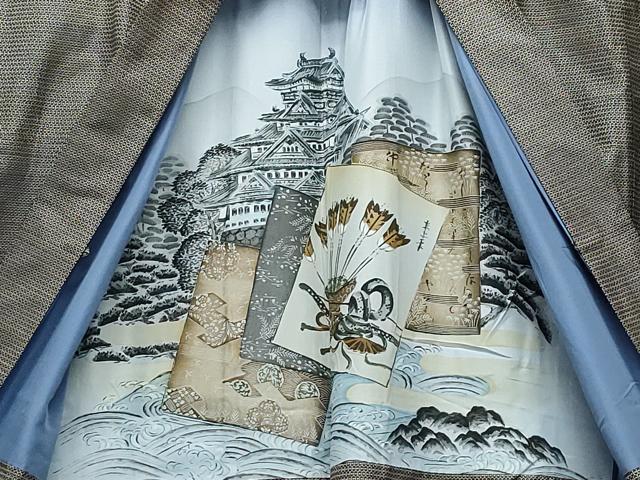 羽織の状態は接写画像のように両袖に汚れがございます。