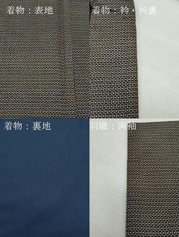 着物の状態は接写画像のように表地所々・衿・衿裏・裏地に汚れがございます。