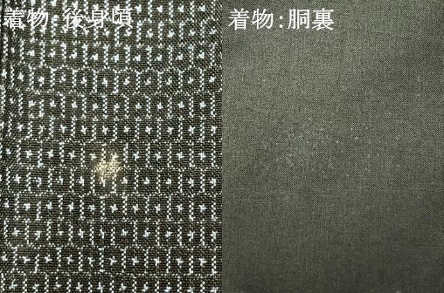 着物の状態は接写画像のように後身頃・胴裏に薄い汚れがございますが