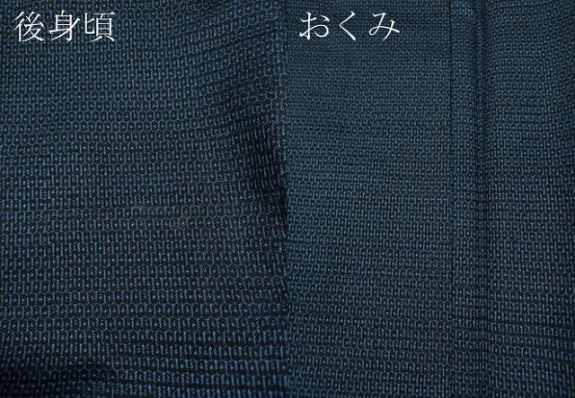 着物の状態は接写画像のようにおくみにヤケ、後身頃に薄い汚れがございますが