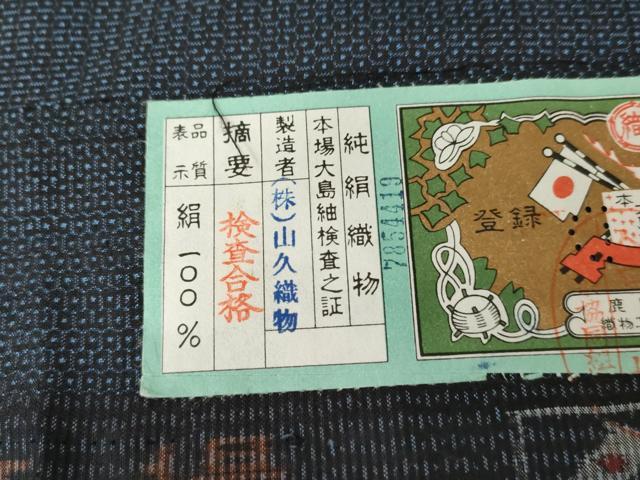 Heiwaya Kimono: Men's Authentic Oshima Tsumugi Ensemble, 100 Tortoiseshell Pattern, Fully Stuffed, Carp Lining, Made by Yamakyu Orimono, Certificate of Authenticity Included, Pure Silk, Excellent Condition, Unused, AABD6377cs