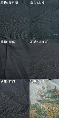 羽織の状態は接写画像のように右袖・後身頃・羽裏に薄い汚れがございますが