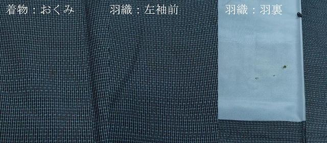 羽織の状態は接写画像のように左袖前・羽裏に汚れがございますが