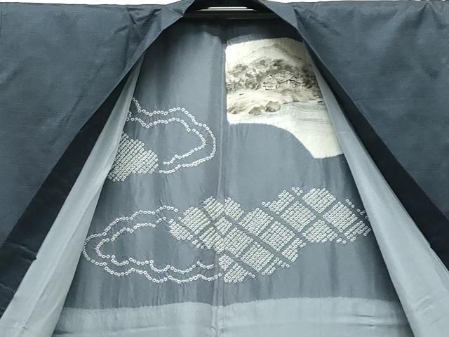羽織の状態は接写画像のように羽裏に薄い汚れがございます。