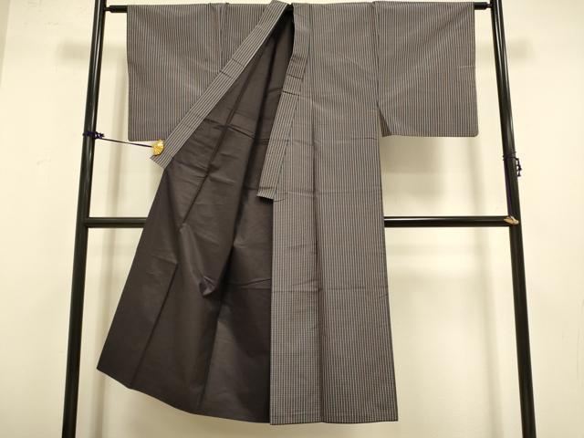 Heiwaya Kimono: Men's Authentic Striped Oshima Tsumugi Silk "Mamichi" (Madachi) - Excellent Quality (DAAZ5029du)