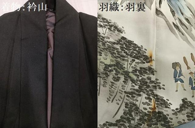 羽織の状態は接写画像のように羽裏に汚れがございますが
