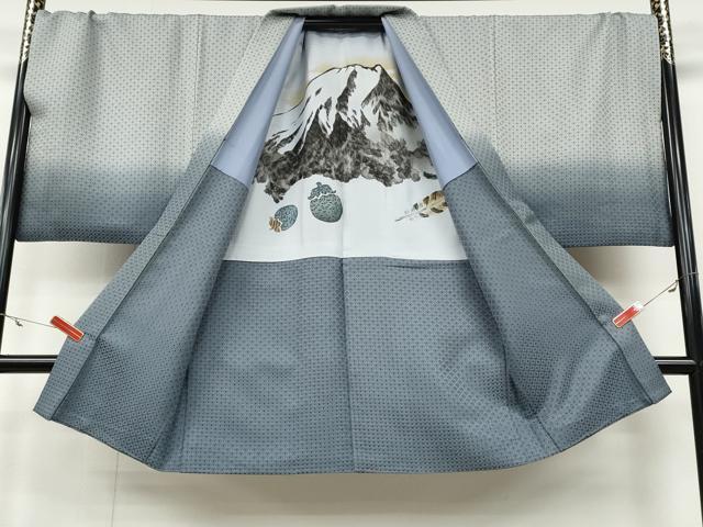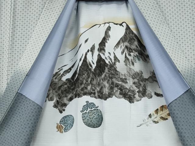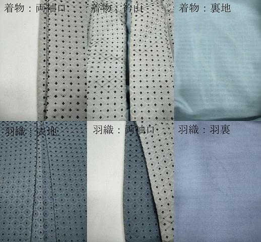 羽織の状態は接写画像のように表地所々にヤケ、両袖口・羽裏に薄い汚れがございます。