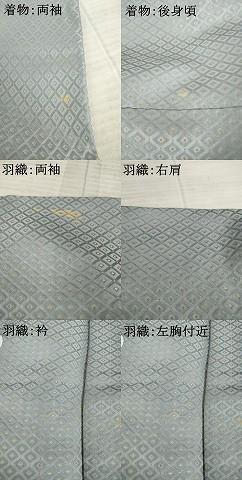 羽織の状態は接写画像のように両袖・右肩・衿・左胸付近にシミがございますが