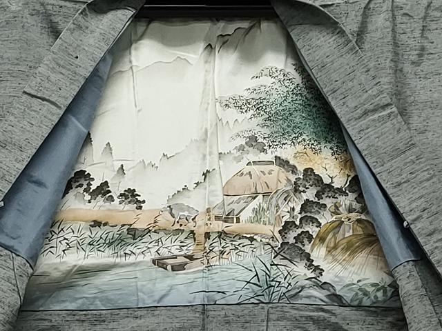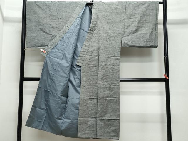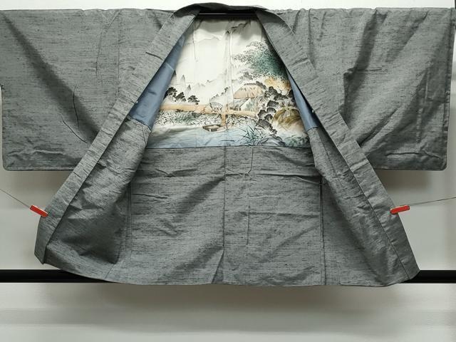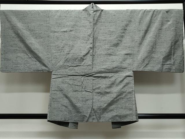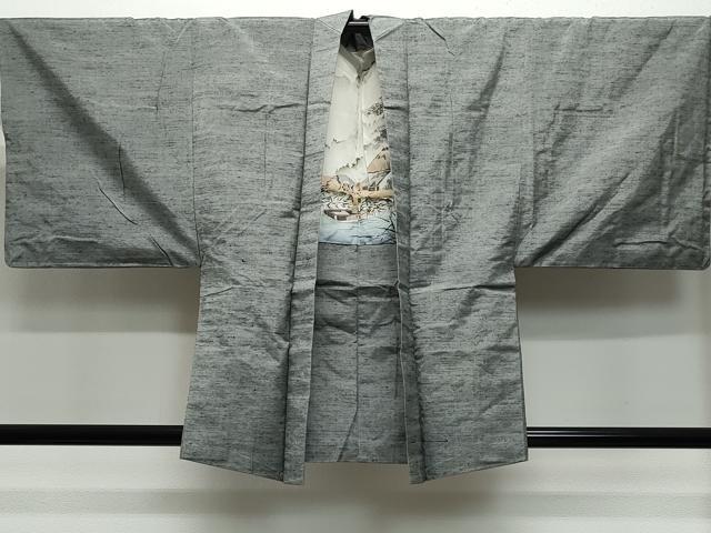 Heiwaya Kimono: Men's Tsumugi Ensemble, Gray, Pure Silk, Excellent Condition, CAAX0919vf