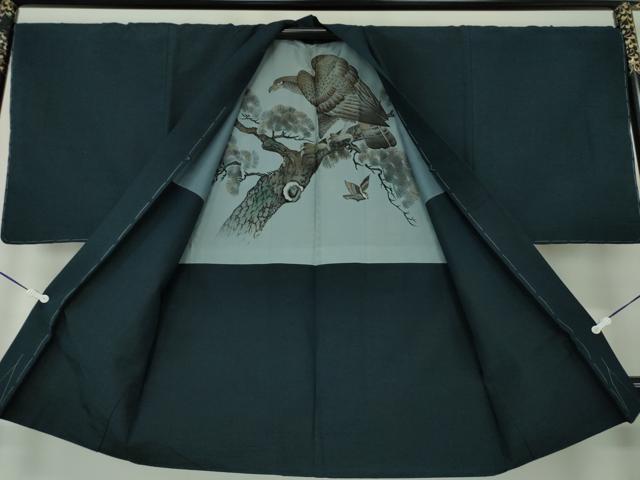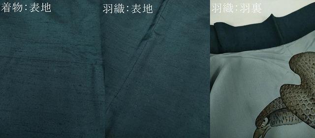 羽織の状態は接写画像のように表地所々に薄い汚れ、羽裏に薄いアクがございます。