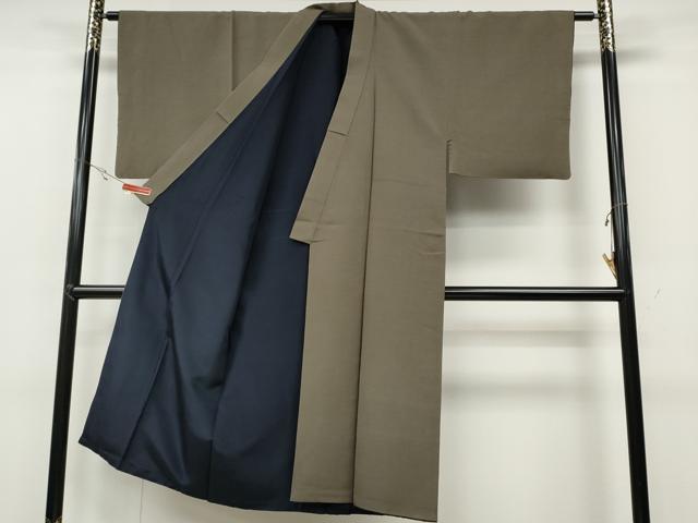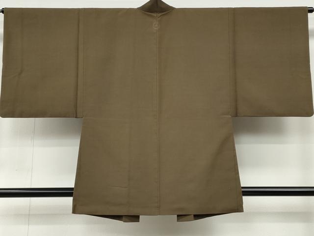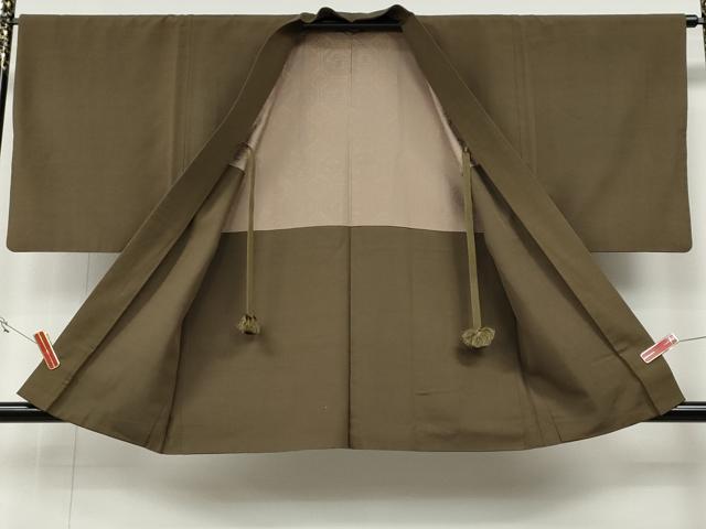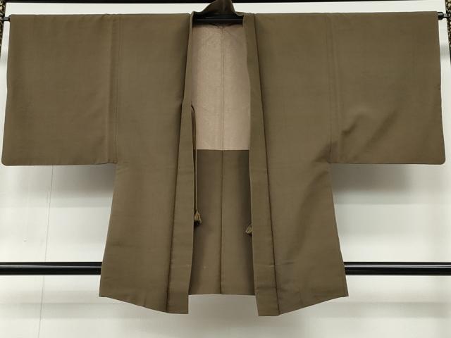 Heiwaya Kimono: Men's Tsumugi Haori Set. Kimono: Raw Wall Color, Haori: Brown. Includes Haori Cord. Pure Silk. Excellent Condition. Product Code: CABB6346ut